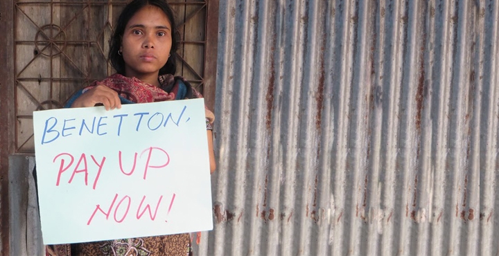 Sous la pression de l’opinion publique, Benetton a enfin annoncé le 20 février 2015 qu’elle participerait au fonds officiel d’indemnisation. Elle est la dernière grande entreprise textile qui refusait d’assumer ses responsabilités, bien que ses relations d’affaires avec les ateliers du Rana Plaza aient été prouvées. La Campagne Clean Clothes (CCC) et Avaaz avaient récemment lancé une nouvelle pétition, en vue de la Fashion week de Milan, le rendez-vous incontournable de la mode à la fin février. En très peu de temps, plus d’un million de signatures ont été rassemblées!